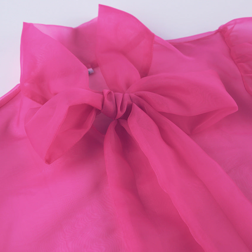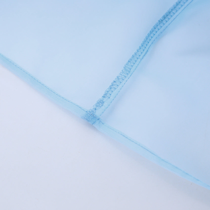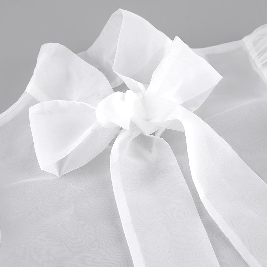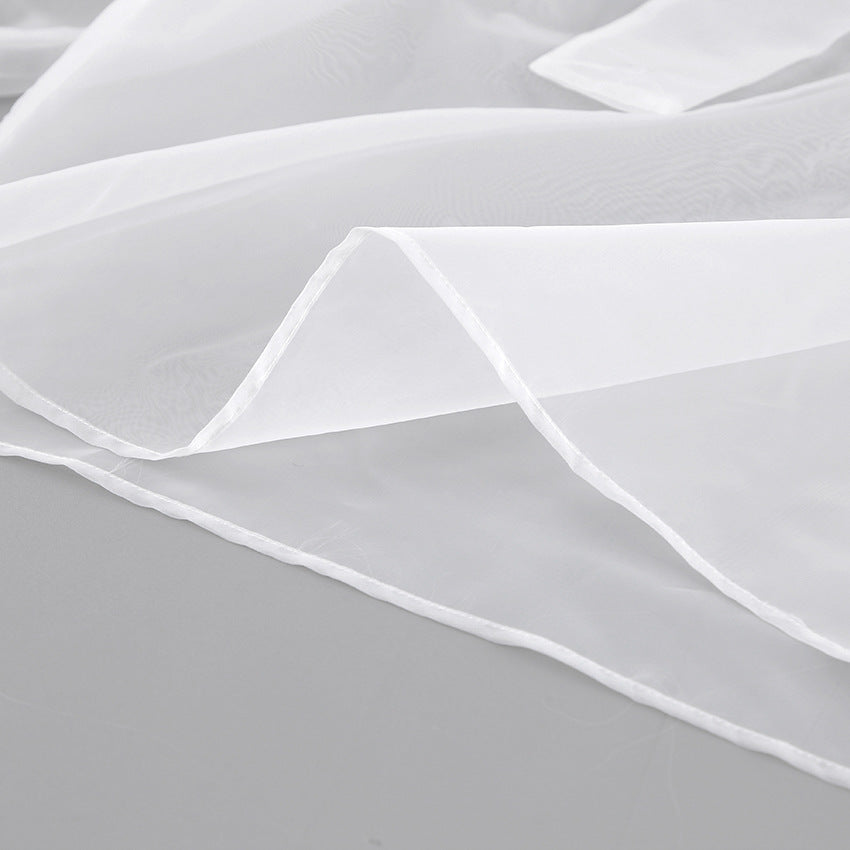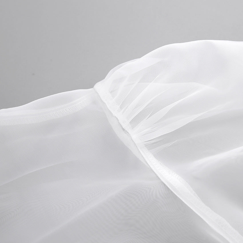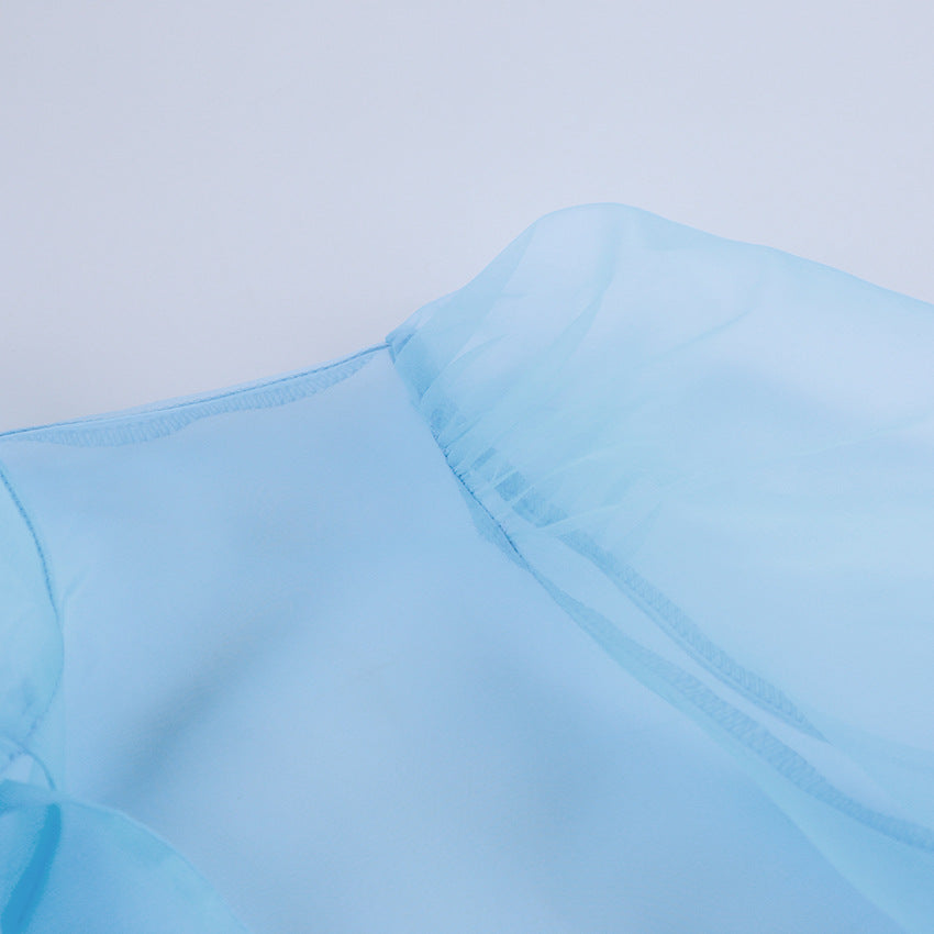 Blusa Clarice toda em organza com detalhes dourados no pulso.